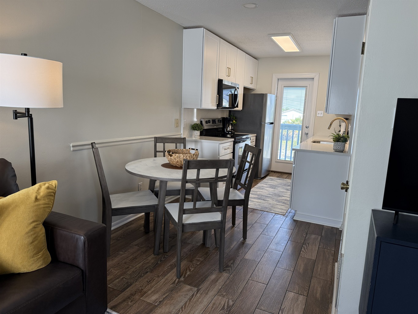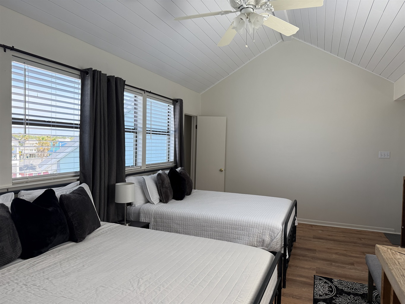 Ocean Reef 116 is a 2 bedroom, 1.5-bathroom, second floor walkup unit that will sleep 8. The primary bedroom has a King bed, and the upstairs loft area has 2 Queen beds. A sofa sleeper is in the living room. Great Beach location for a family that likes to walk to everything. This unit has been recently updated with all new appliances. New flooring and fresh paint!