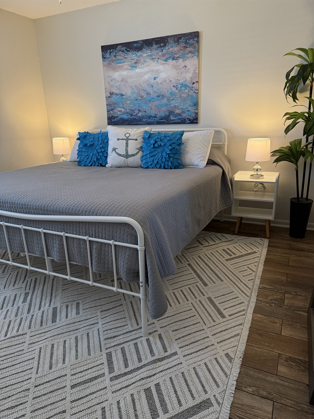 2 Bedrooms • 2 Bathrooms 2 Baths • Sleeps 1-8NEWLY RENOVATED! Keep it simple at this centrally-located beachside condo. Enjoy all that Gulf Shores has to offer without getting in your car. No need to cross the street to get to the beach as the beach is a few steps from our parking lot. Look no further for the perfect condo at a reasonable price! Brand new King Bed in main bedroom and two Queens in the loft!